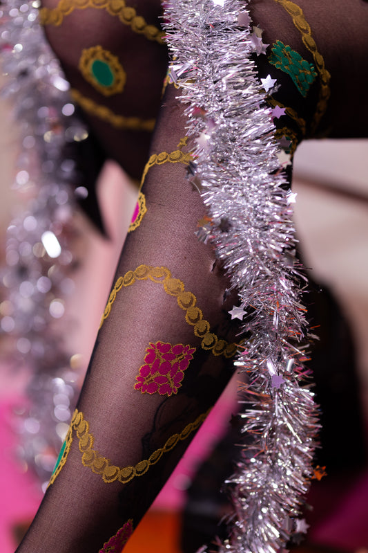 Collant Neri Trasparenti Perle e Gioielli